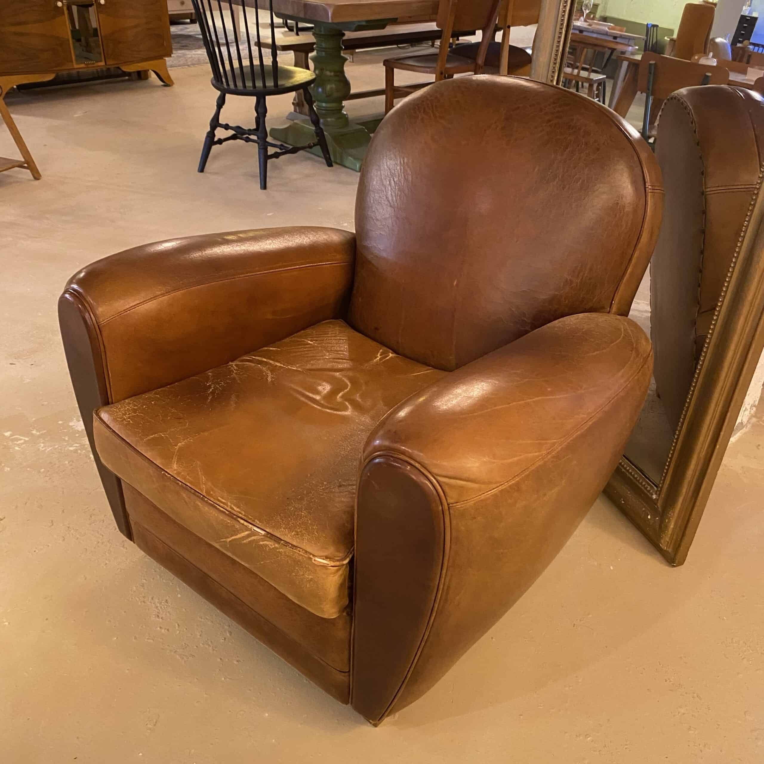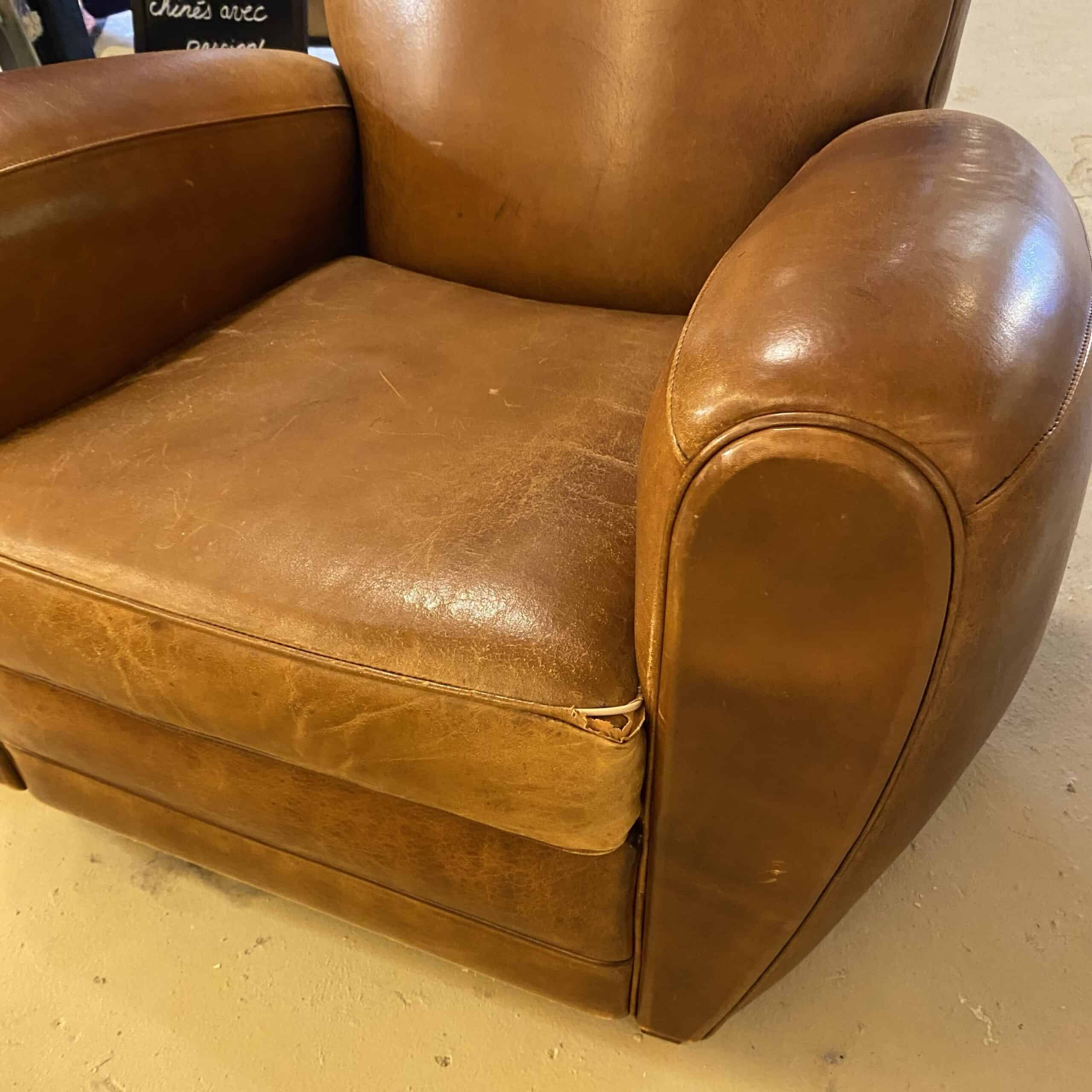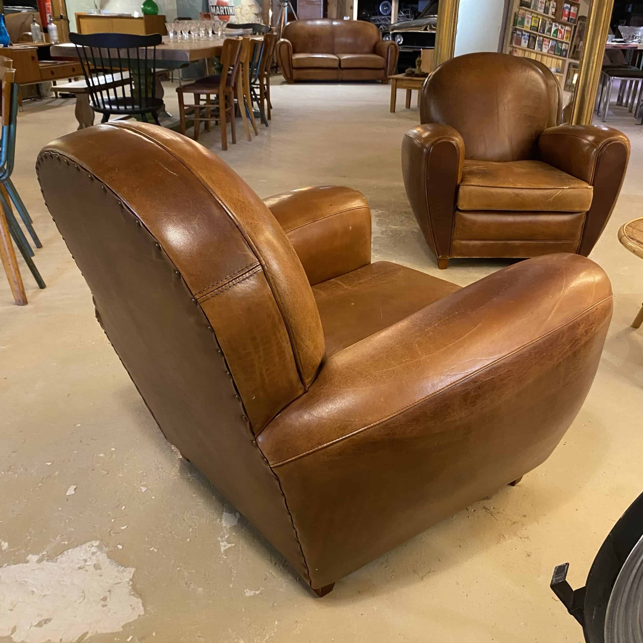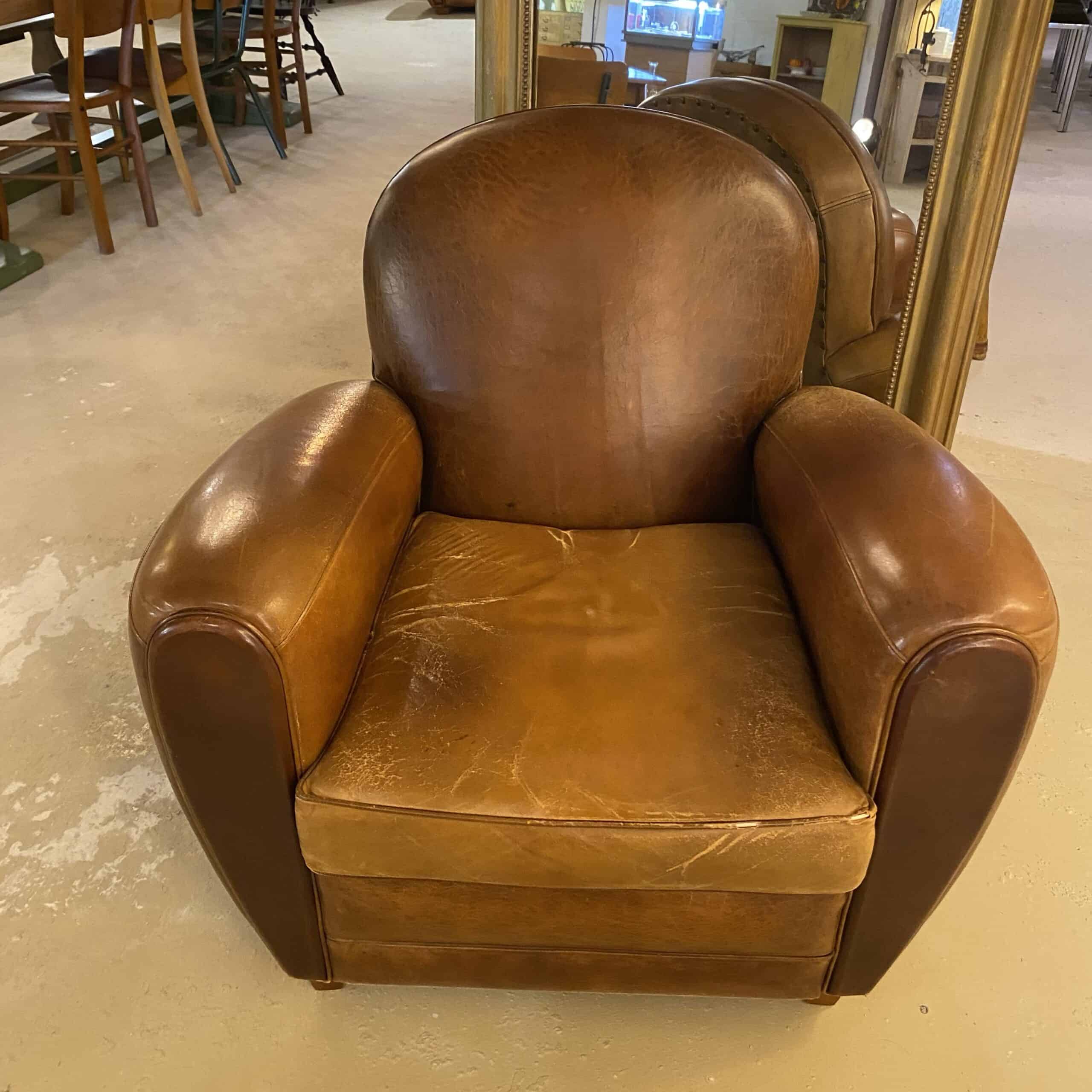 Authentiques fauteuils CLUB des années 1970, cuir véritable. Vendu à l'unité ou la paire affichée à 1000€.
